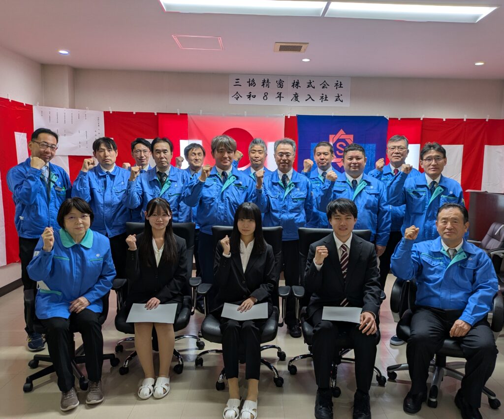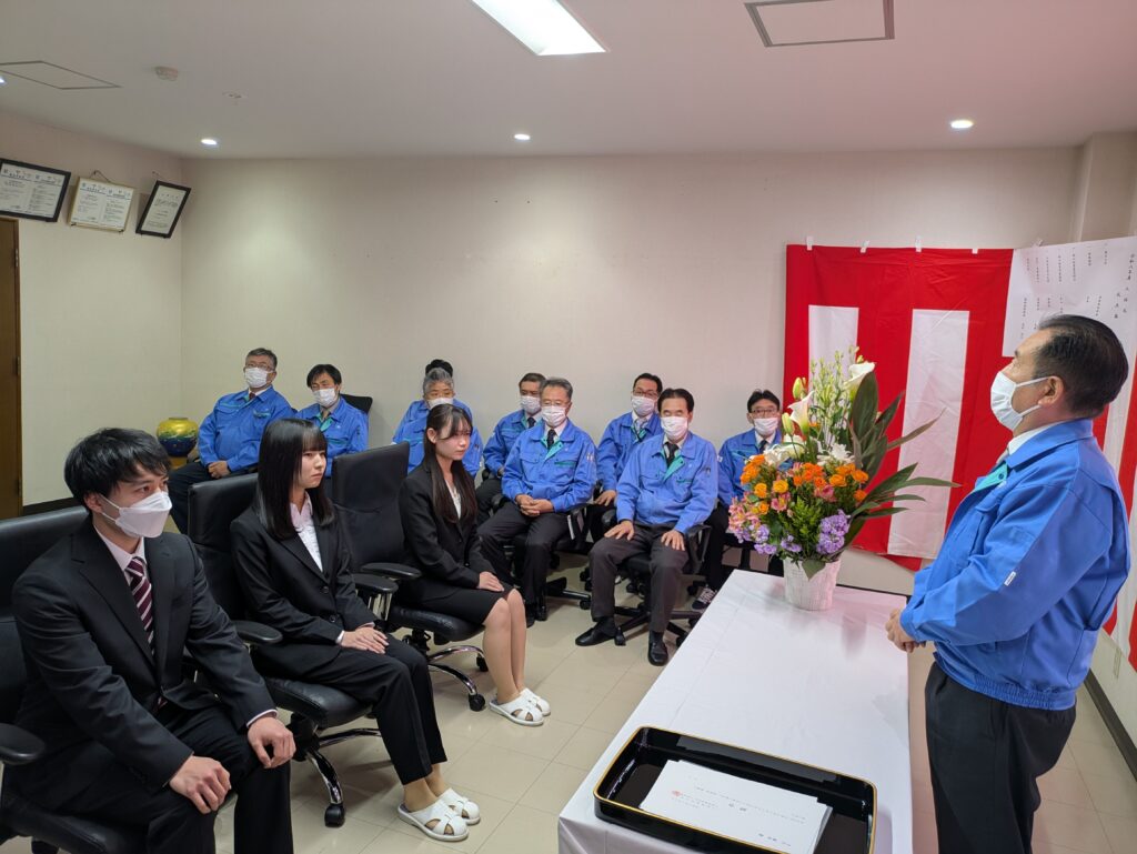 令和8年4月3日、令和8年度新入社員入社式を開催しました。当日は緊張の中にも希望に満ちた表情の新入社員たちが集い、新しいスタートを切りました。